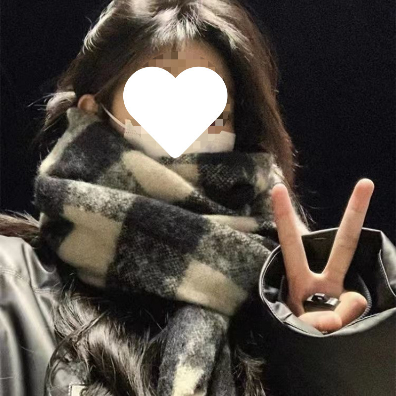 -               新款仿羊绒格子围巾女秋冬季加厚保暖披肩两用纯色学生围脖包邮