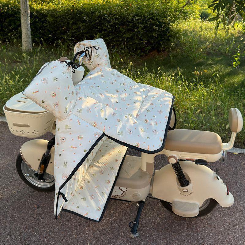 -               电动摩托车挡风被冬季加绒加厚可爱电瓶车防水防风罩防寒保暖通用