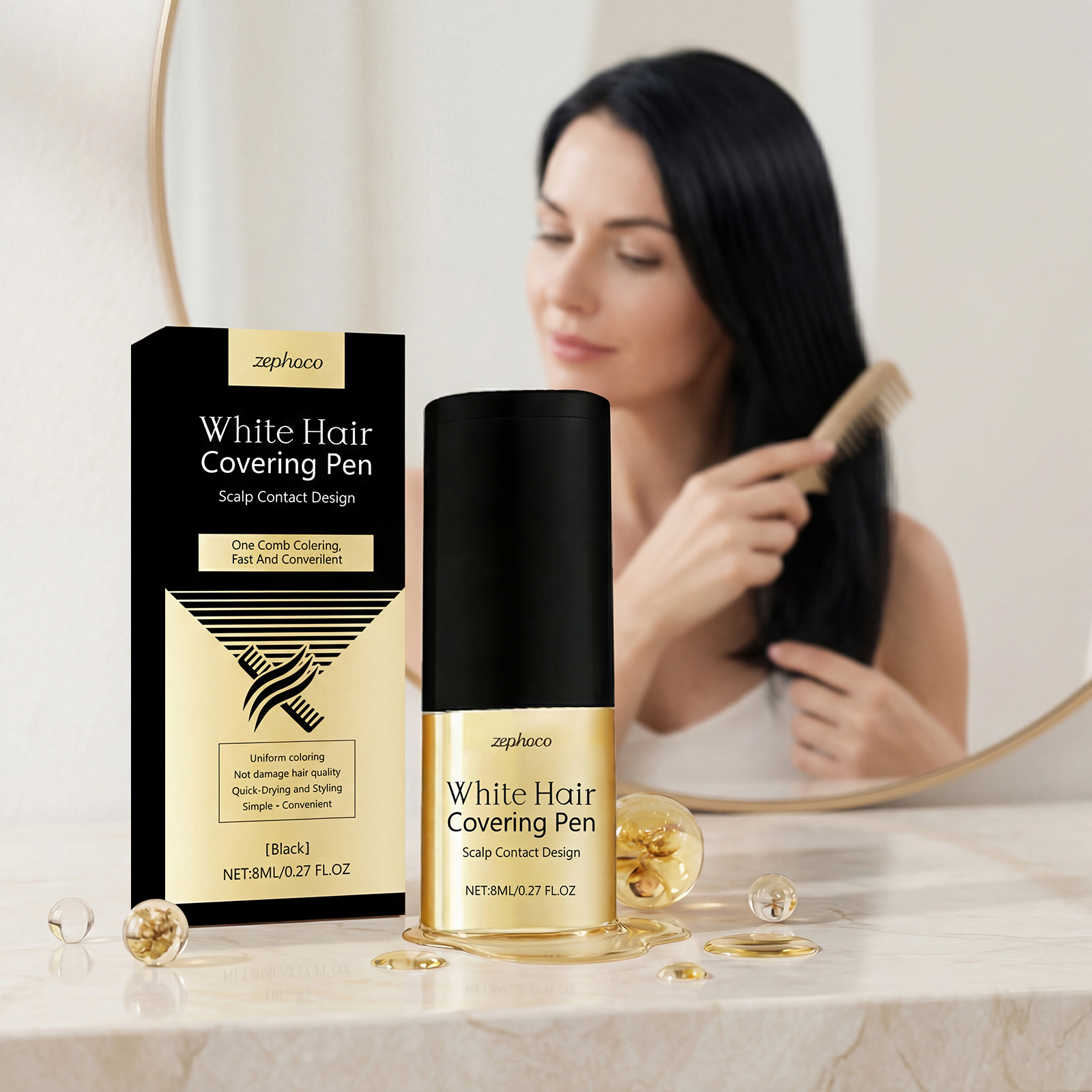 zephoco 黑色美发染梳 自然显色遮盖不易晕染便携日常美发造型梳
