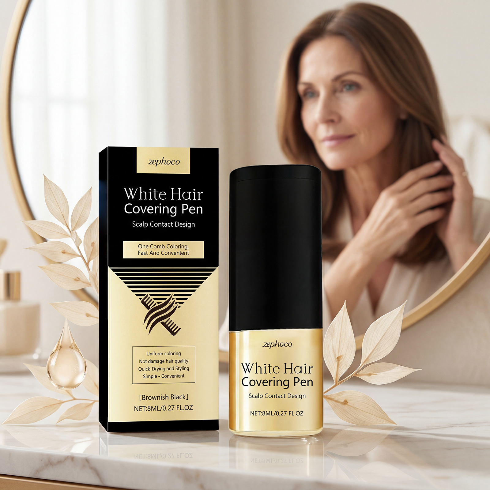 zephoco 黑棕色美发染梳便携补色自然贴合遮盖发色亮泽秀发美发梳