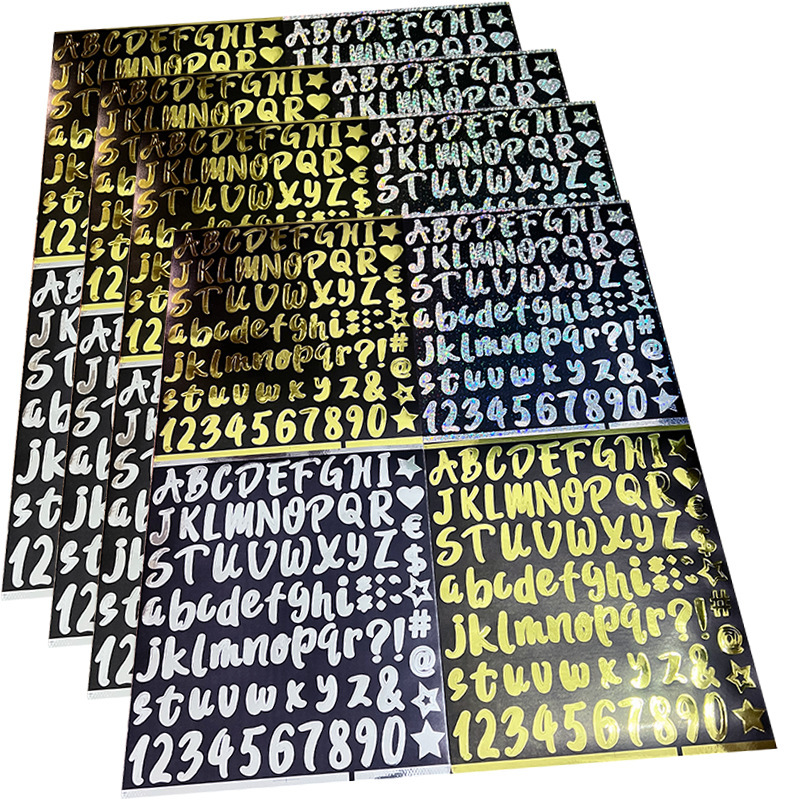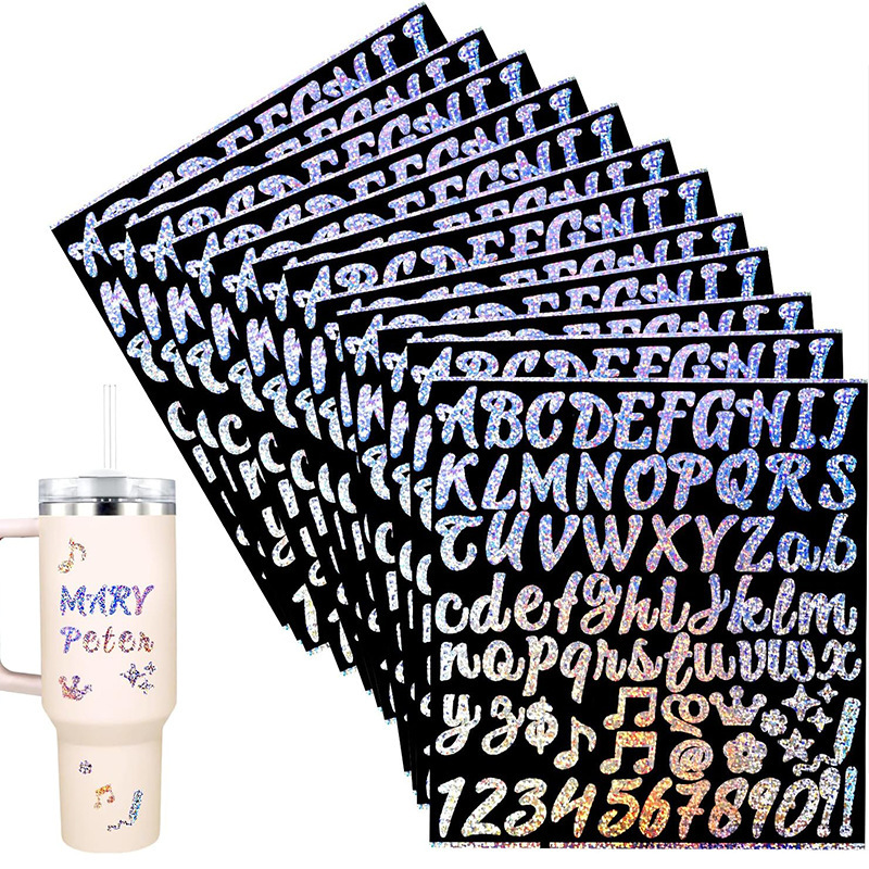 现货批发1英寸字母数字diy闪光镭射贴纸水杯礼品礼物防水防油标签