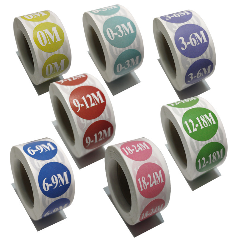 现货批发1英寸婴儿服饰衣服鞋帽大小尺码标识不干胶贴纸标签500贴
