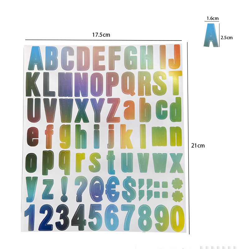 跨境现货diy反光闪光发光彩虹色邮箱号码标记数字不干胶标签贴纸