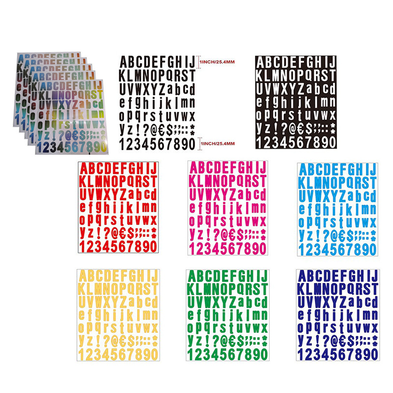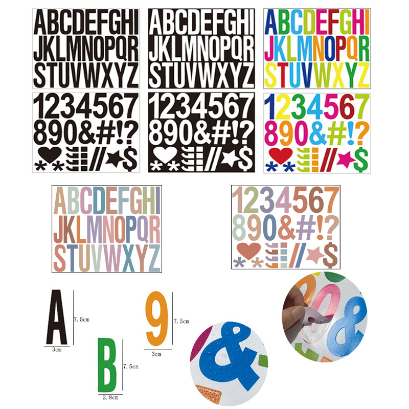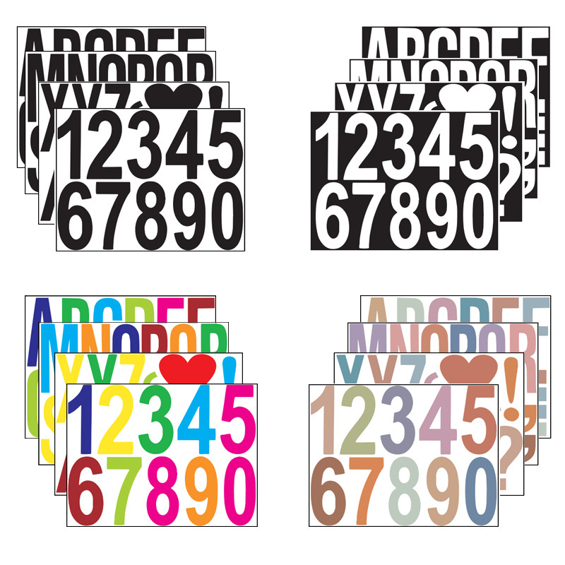 跨境乙烯基字母数字自粘彩色彩虹PVC邮箱号码门牌不干胶标签贴纸