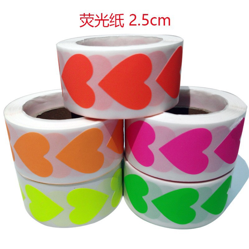 跨境现货1英寸荧光亮色彩色彩虹情人节爱心派对生日diy不干胶贴纸