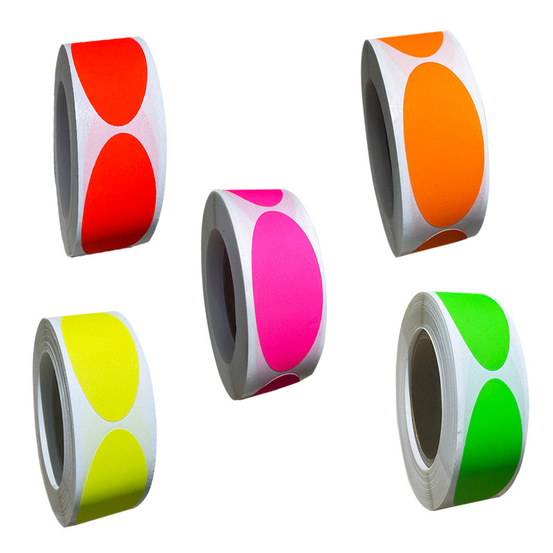 新款现货椭圆形包装封口标记空白自粘可书写diy荧光色不干胶贴纸