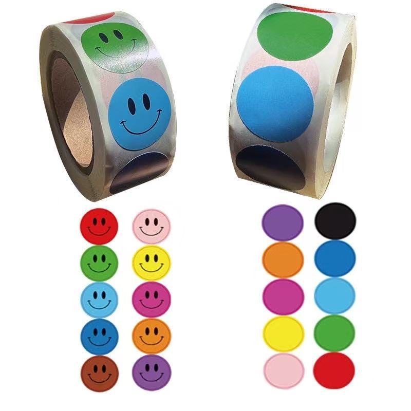现货彩色圆点笑脸编码可书写标记礼品礼物信封封口不干胶贴纸标签