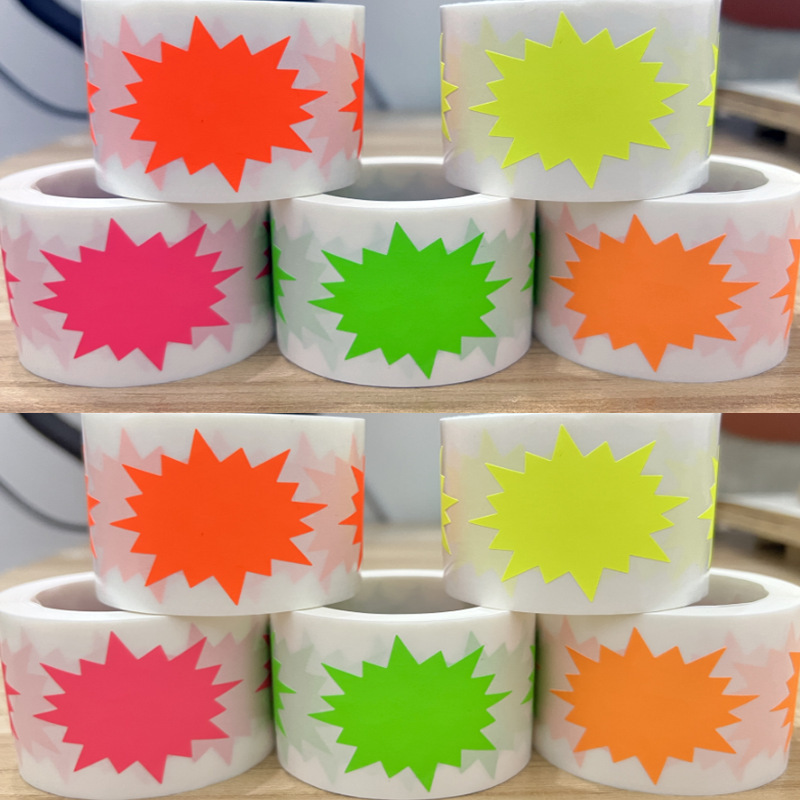 跨境新款2英寸大号荧光亮色爆炸形状diy手工制不干胶封口贴纸标签