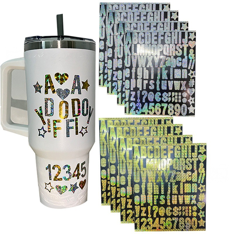 跨境现货vinyl乙烯基镭射闪光色变色diy水杯防水防油自粘字母贴纸
