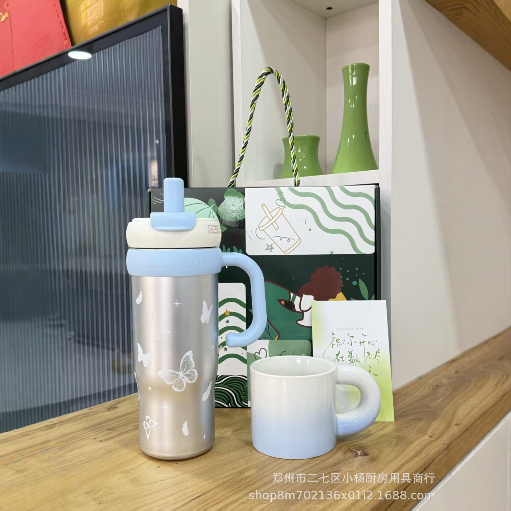 茉梵逐光渐变套装900ML冰霸杯+330ML马克杯带吸管便携水杯礼盒装