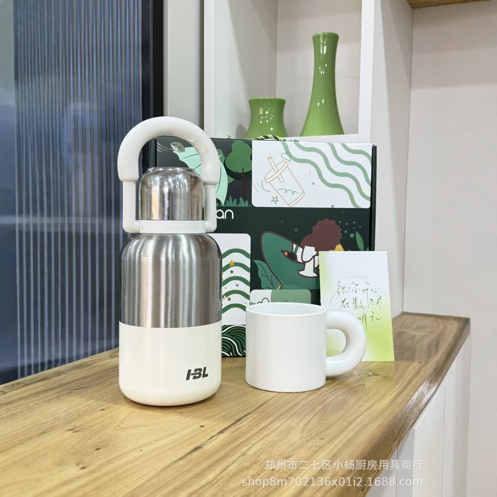 茉梵户外覆钛保温壶套装1000ML保温壶330ML马克杯便携户外套装