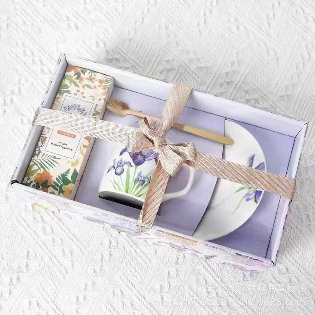 鸢尾花陶瓷咖啡杯碟套装礼盒 高颜值下午茶礼品伴手礼结婚生日礼