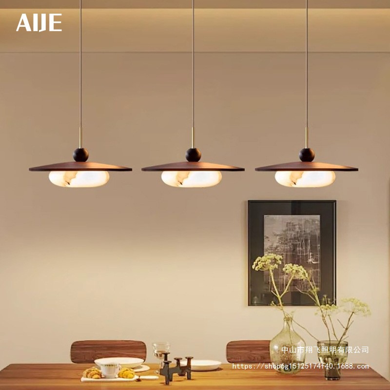2025新款高级感民宿餐厅吊灯三头胡桃色实木中古风饭厅仿云石灯具