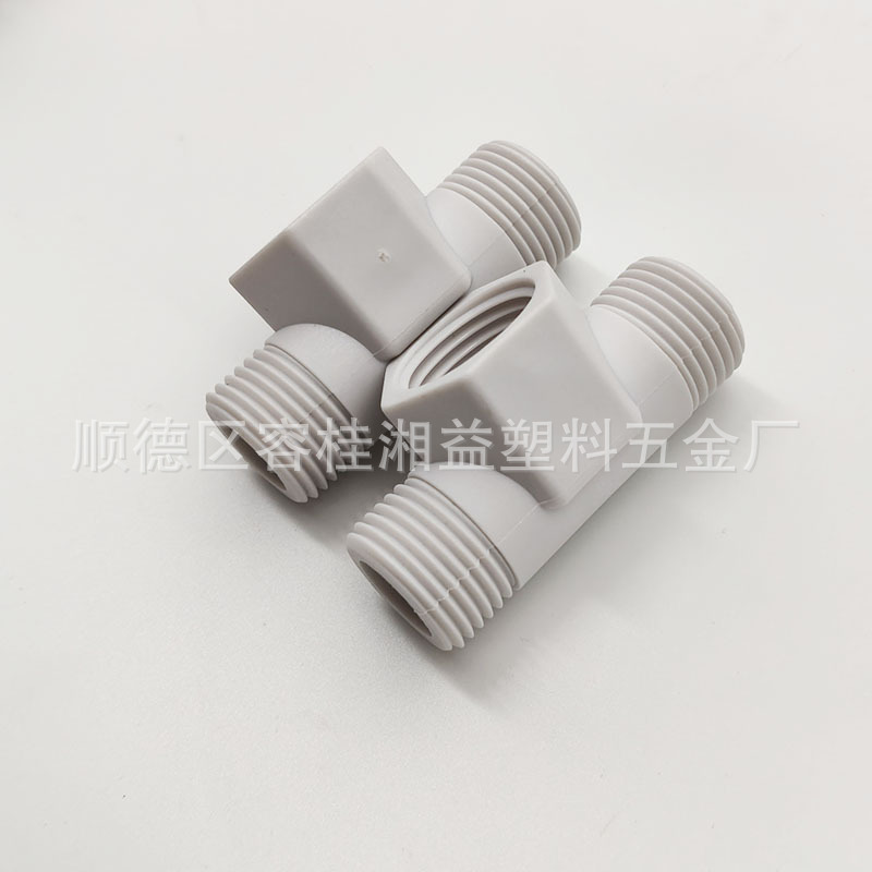 定制开模生产各类尼龙塑料件 尼龙塑料三通分水器4分外牙内牙配件