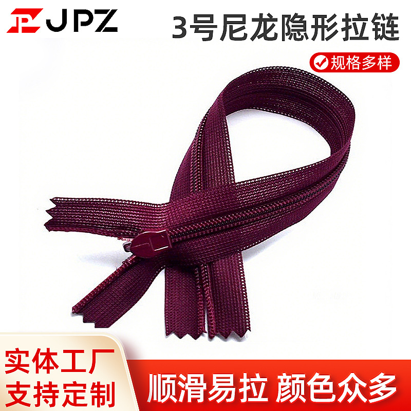 3号尼龙隐形拉链布边蕾丝 女裙抱枕靠垫被套家纺拉链批发现货厂家