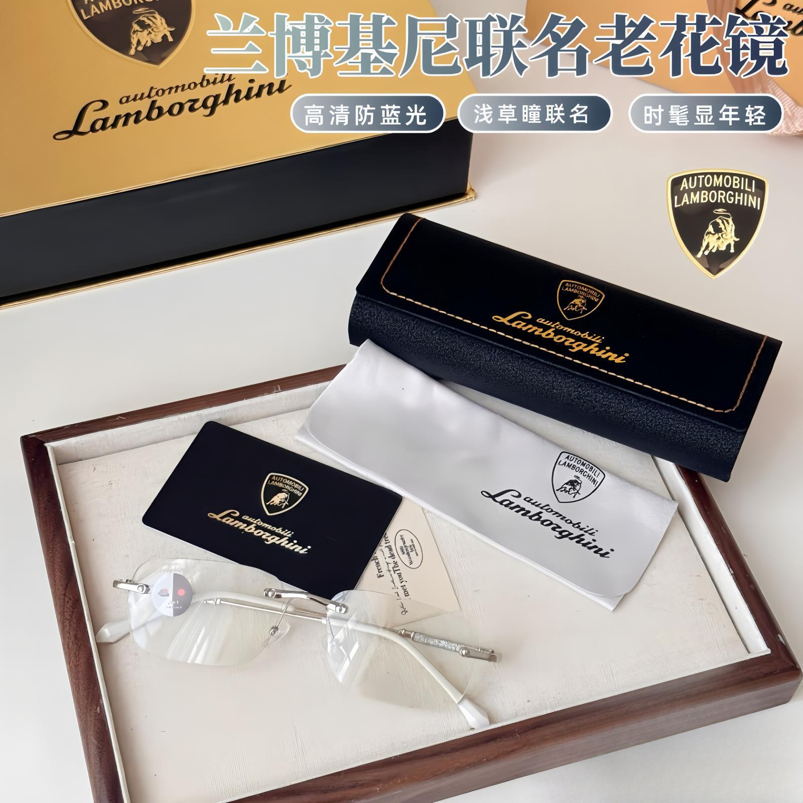 兰博基尼老花镜高档男时尚防蓝光金属高清水晶眼镜高级感女中老年