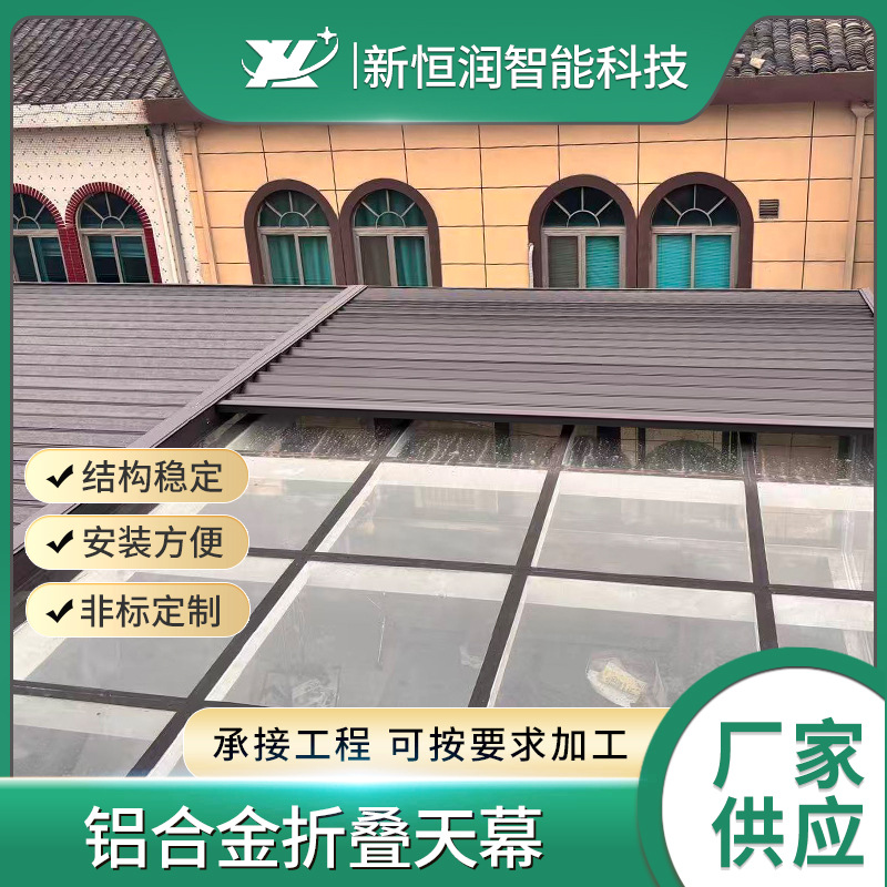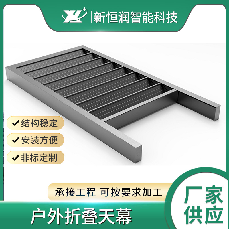 户外休闲折叠金属天幕电动铝合金卷帘天幕别墅遮阳雨棚折叠布天幕