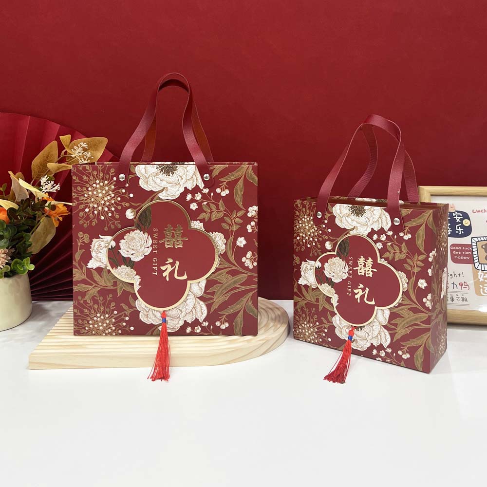 婚礼喜糖高级感伴手礼盒瓦楞抽屉糖盒中式手提喜糖盒流苏吾家有喜