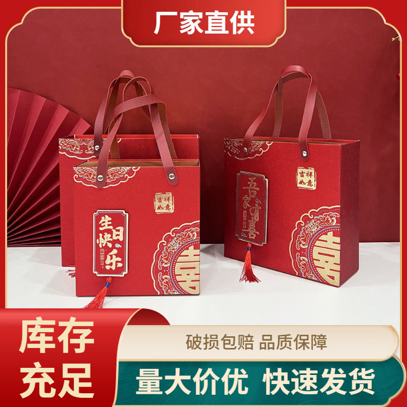 中式乔迁过寿生日专用喜糖盒子高级感皮手提礼盒空盒伴手礼盒批发