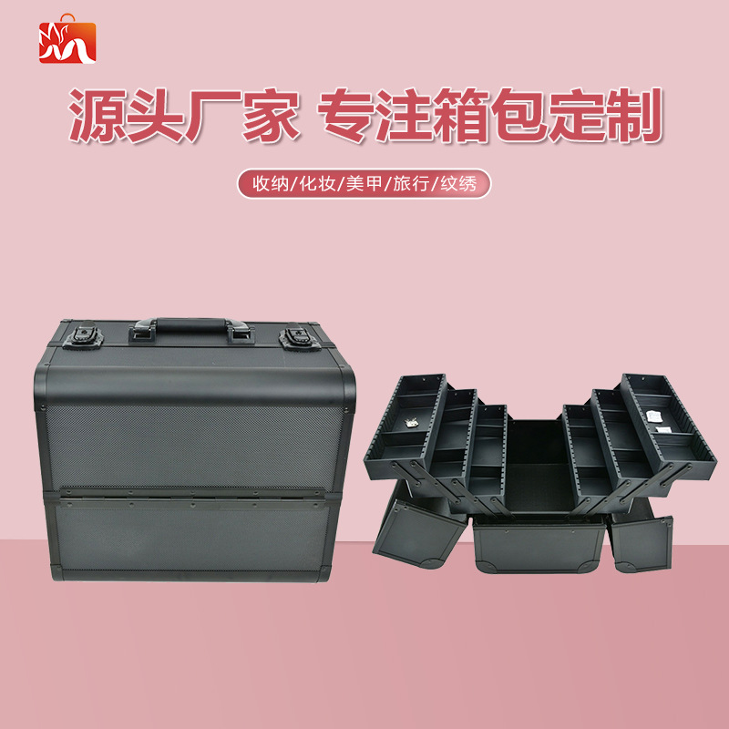 厂家批发专业收纳隔板化妆包多功能手提化妆箱定至纹绣美甲工具箱