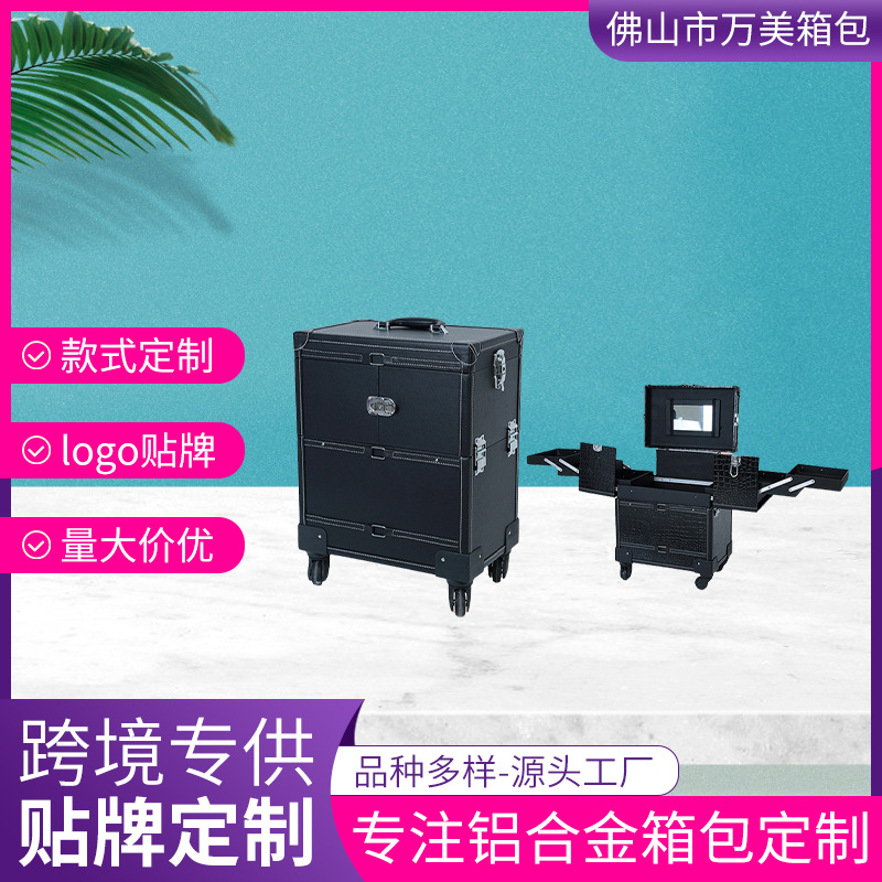铝合金拉杆化妆箱 手提大容量跟妆收纳箱美甲纹绣美发拉杆工具箱
