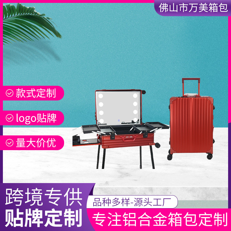 铝镁合金led灯纹绣彩妆多功能化妆箱pc化妆品旅行收纳拉杆行李箱