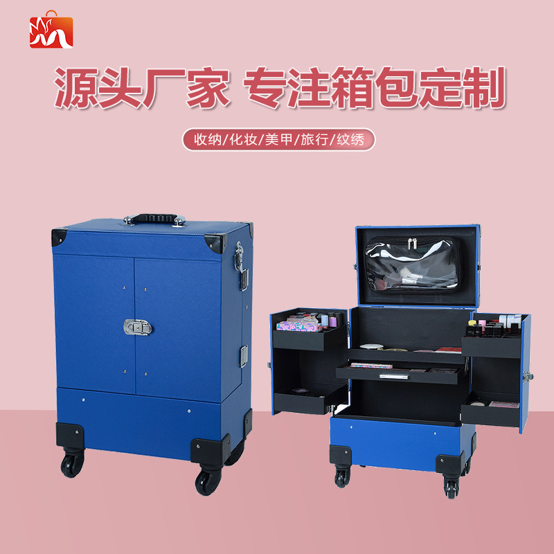 厂家直销化妆箱拉杆美容美发美甲纹绣多层拉杆化妆工具箱现货供应
