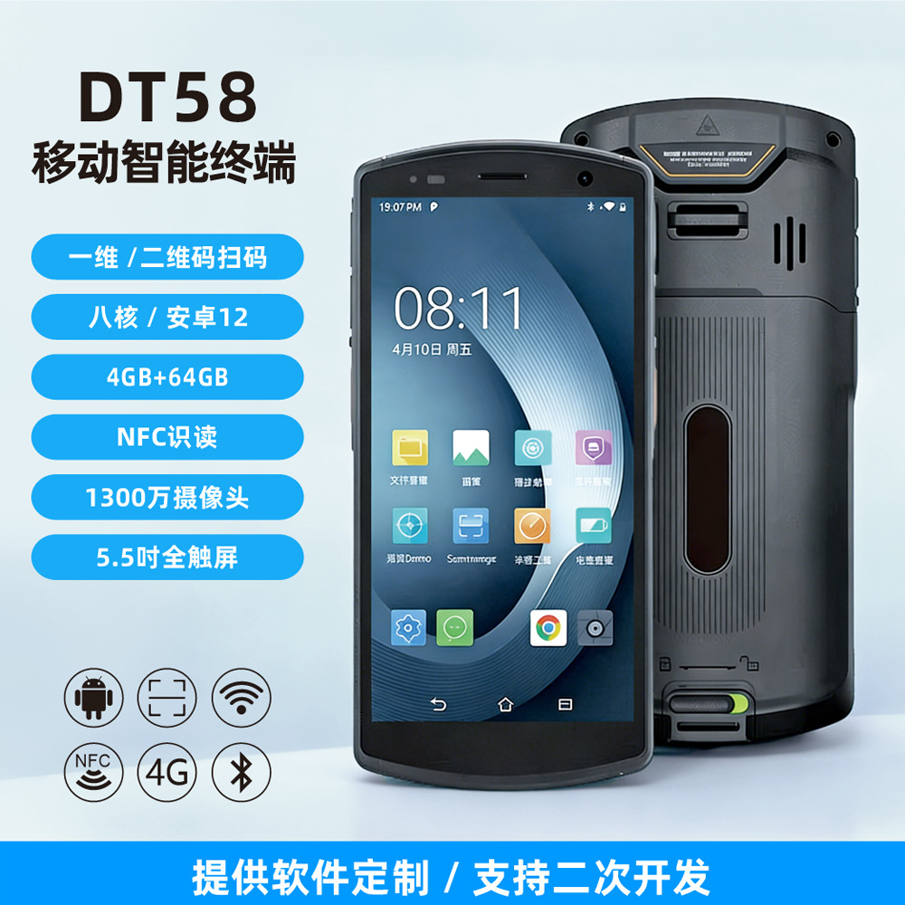 5.5寸全屏2G/16G安卓12扫码58打印小票不干胶标签NFC手持终端PDA