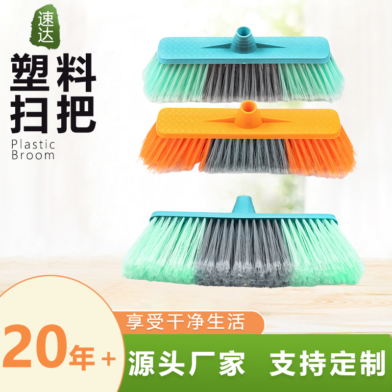 硬毛塑料扫把头家用环卫单个木杆塑料扫把工厂扫水学校清洁扫把头