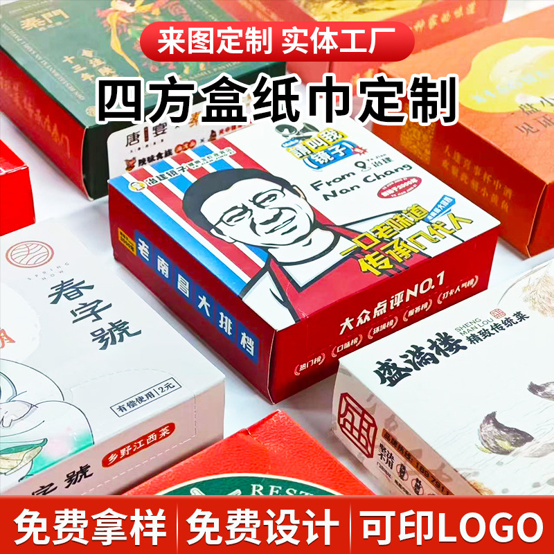 餐饮纸巾定 制可印logo广告方盒定 做餐厅酒吧餐巾纸商用抽纸订