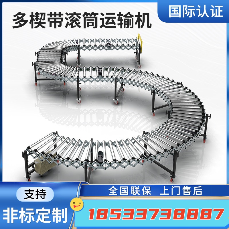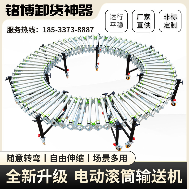 动力滚筒输送机伸缩转弯线传送带输送线_装卸货输送带送料机