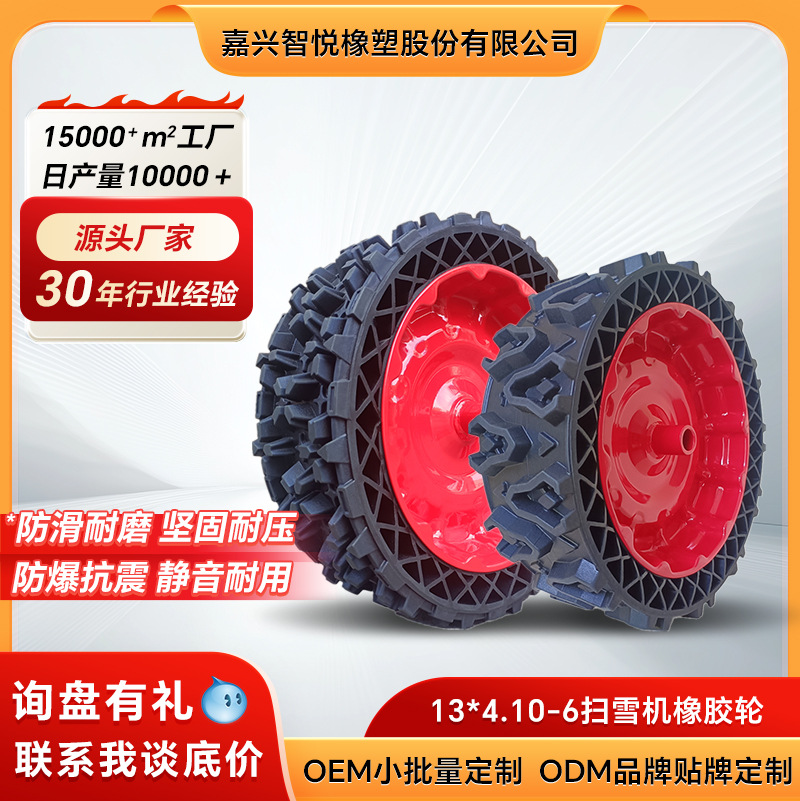 高端高弹性高缓冲强抓地扫雪机轮子清雪机胶轮橡胶滚轮