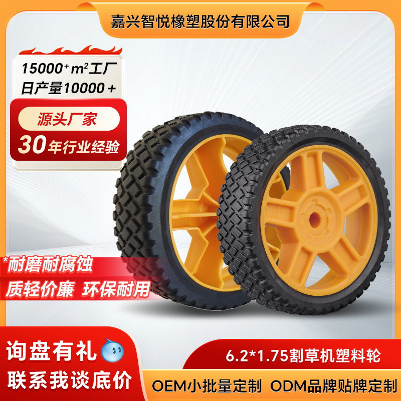 8寸割草机塑料轮子8*2聚丙稀PP草坪机包胶脚轮PVC滚轮