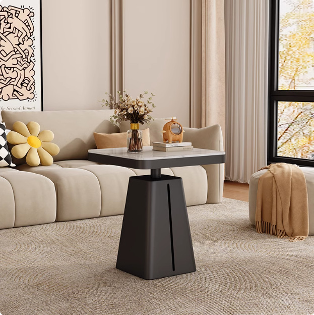 轻奢岩板酒店客厅正方形茶几简约沙发边几休闲阳台接待方桌角几