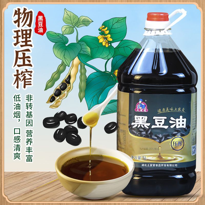 土家爱 湖北恩施特产 食用油 植物油 物理压榨头道黑豆油5L/桶