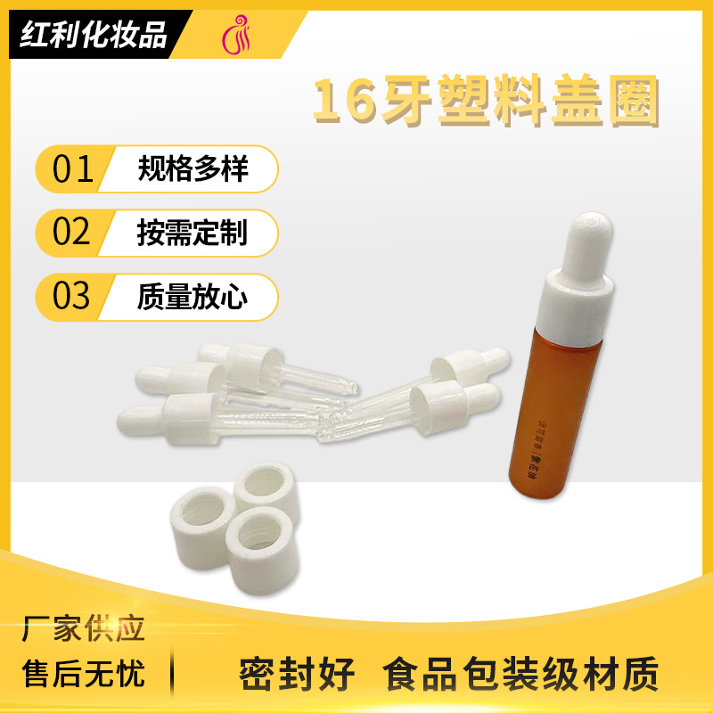 16牙塑料盖圈配胶头滴管精油瓶分装胶头塑料原液精华液滴管瓶子