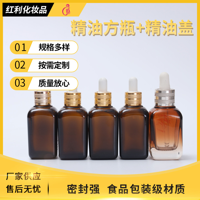 30ml雅诗小棕瓶玻璃瓶高档精华液分装四方滴管玻璃精油乳液瓶批发