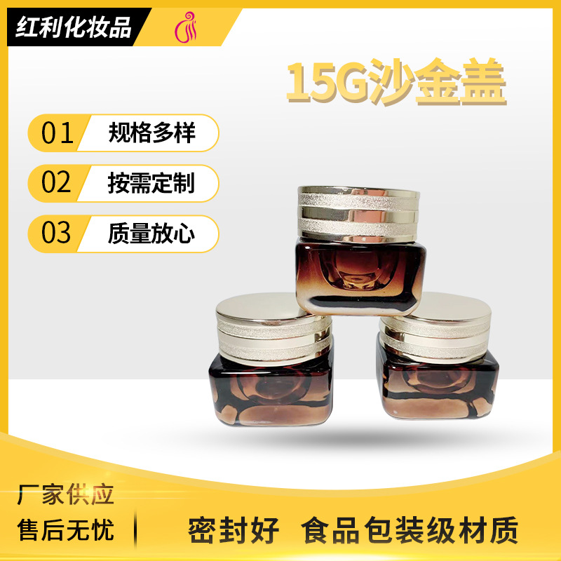 小棕瓶15克30g膏霜玻璃瓶四方广口茶色分装玻璃瓶面霜高级