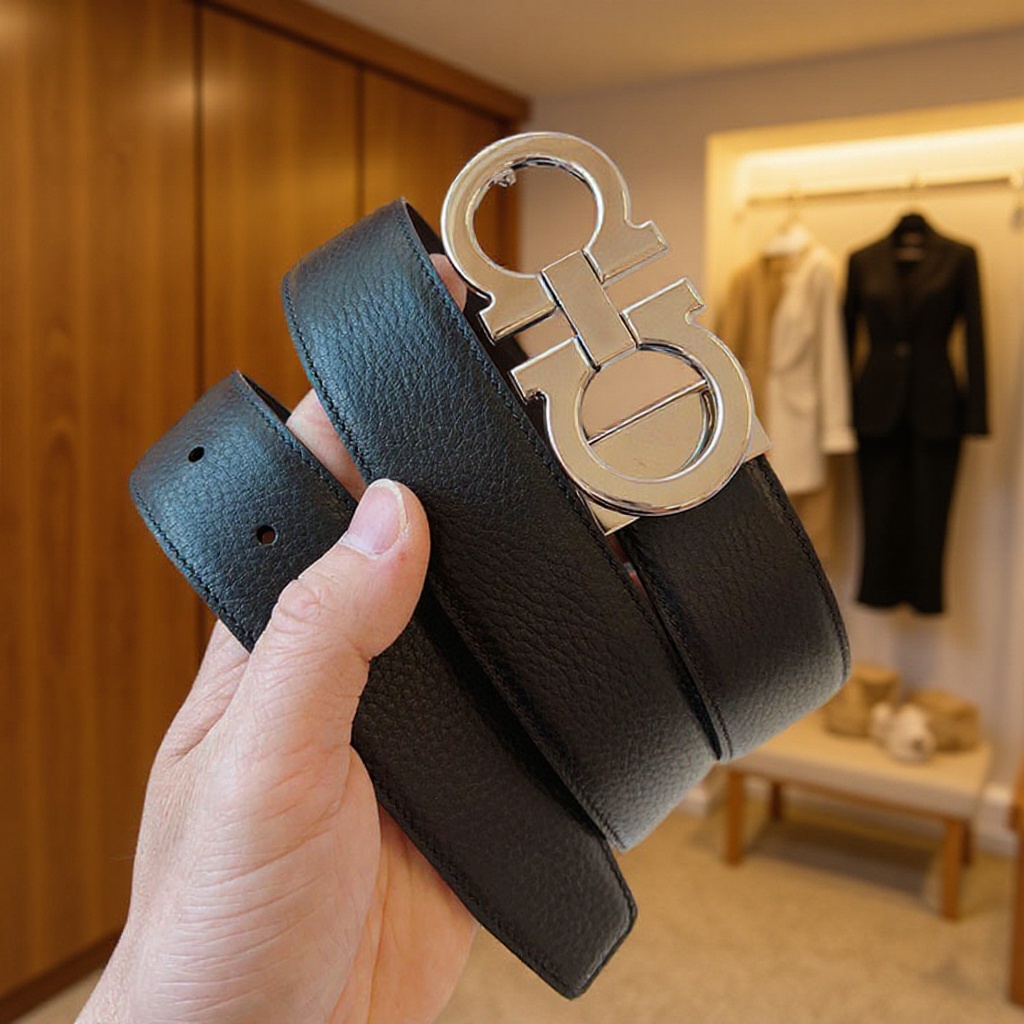 男款经典菲拉皮带商务腰带宽腰封奢侈品简约百搭平滑扣真皮双面
