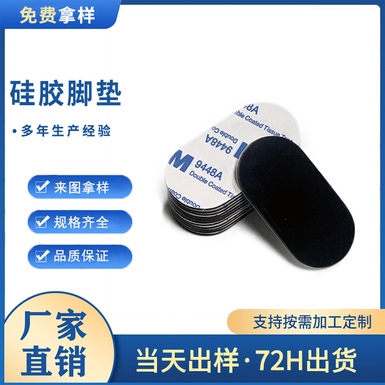 厂家生产黑色硅胶脚垫 自粘硅胶垫加厚家具防滑脚垫 椭圆硅胶平垫