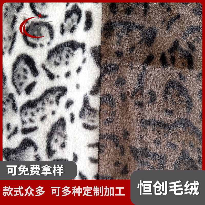 厂家直售豹纹印花仿水貂面料 箱包服饰涤纶印花长毛绒布面料批发