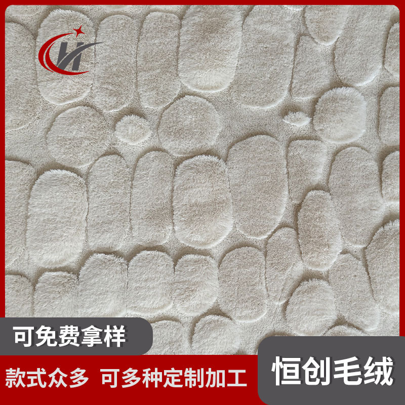 不规则鹅卵石形态三层提花仿兔毛面料 靠垫抱枕纬编提花长毛绒布