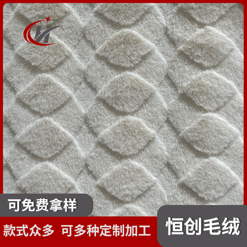 不规则几何形提花仿兔毛绒布面料 箱包鞋帽服装抱枕毛绒布料批发