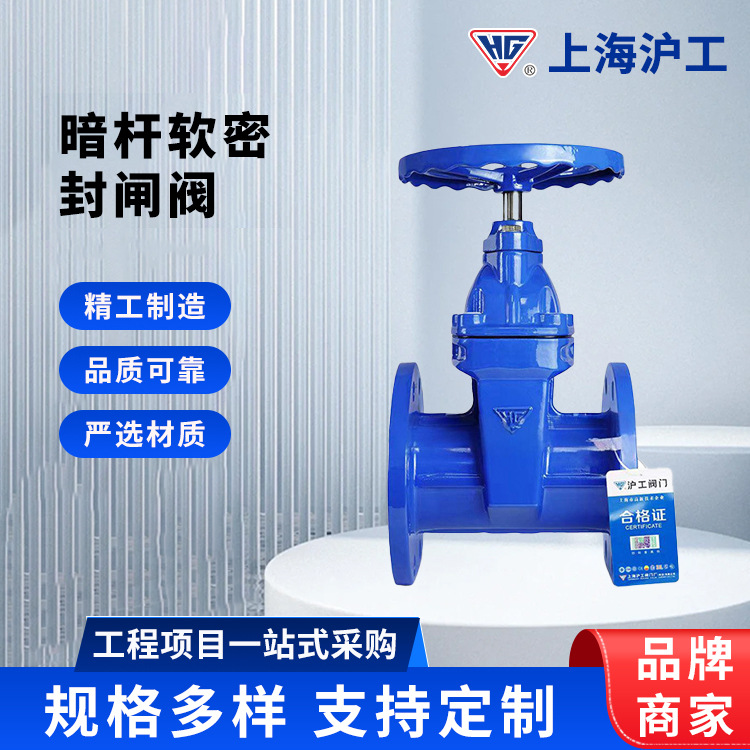 上海沪工软密封暗杆闸阀Z41X-16Q 球墨铸铁法兰阀门明杆开关闸阀
