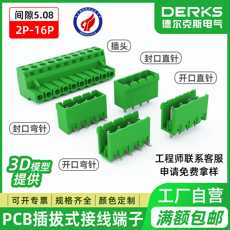 配套A级铜PCB接线端子YC100-508绿色插拔式接线端子厂家2EDG