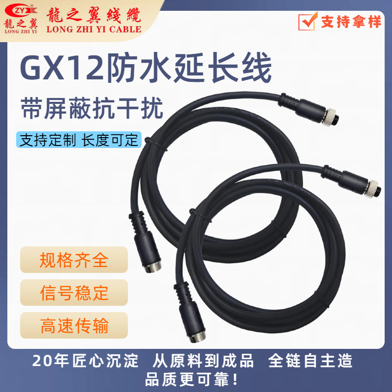 龙之翼GX16-12航空插头带屏蔽车载监控连接器公母插座对接线缆