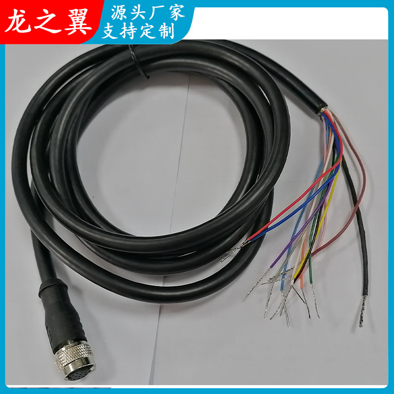 12芯橙色屏蔽耐寒电线M12 12针8孔带线2米防水航空插头传感器仪气