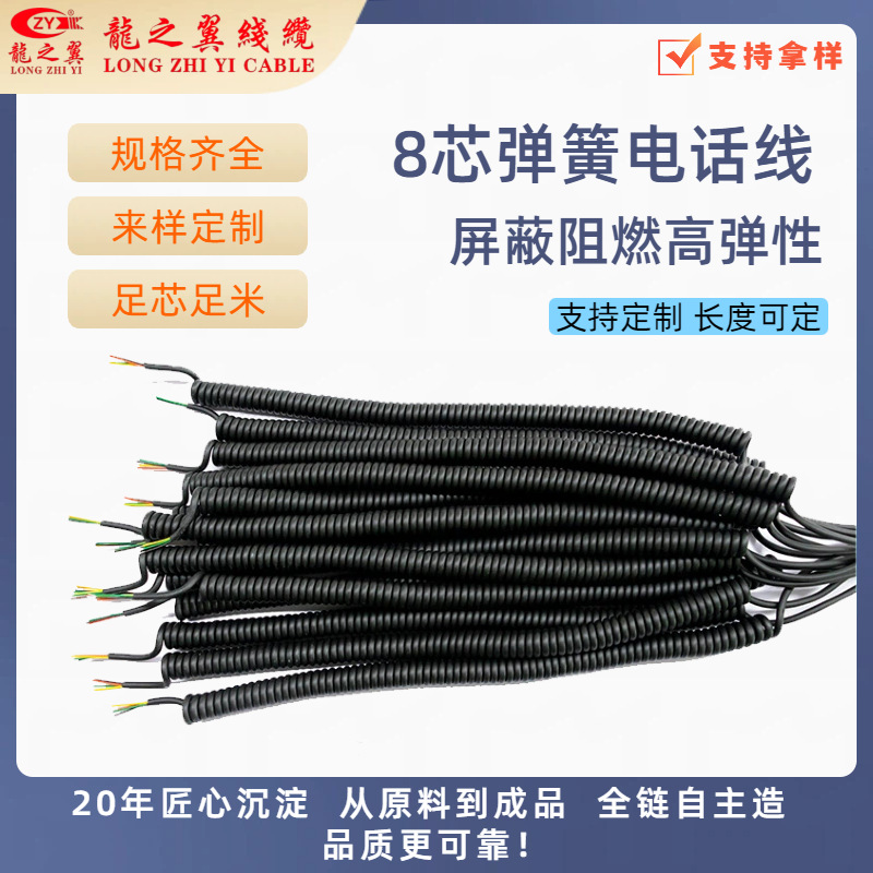 UL20549 22AWG*8芯弹簧线双绞屏蔽阻燃高弹性TPU磨砂面电话线8P8C