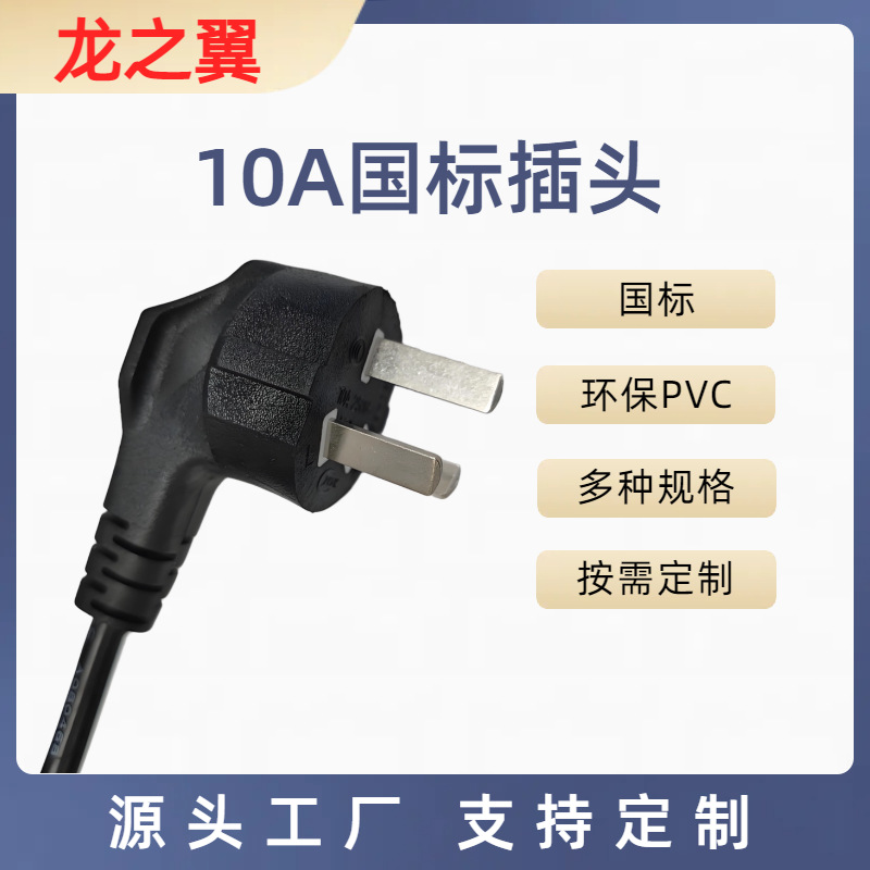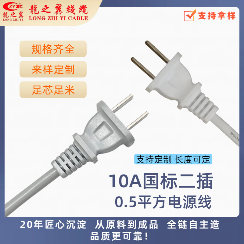 纯铜10A国标二插电源线工业设备通用两芯插头线源头工厂长度可定
