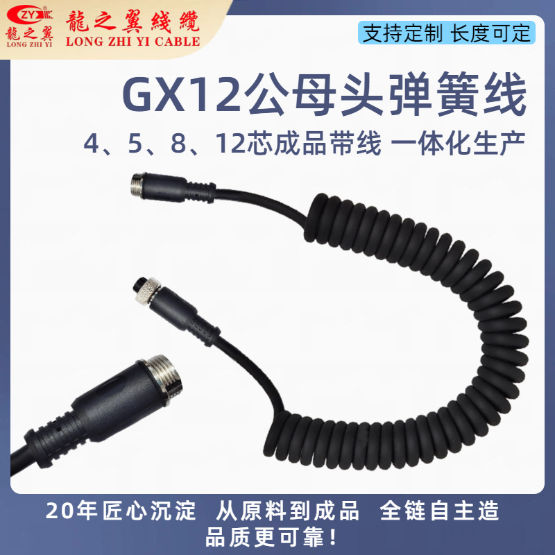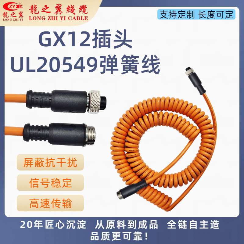 GX12插头UL20549弹簧线耐弯折伸缩电缆工业自动化设备专用线供货